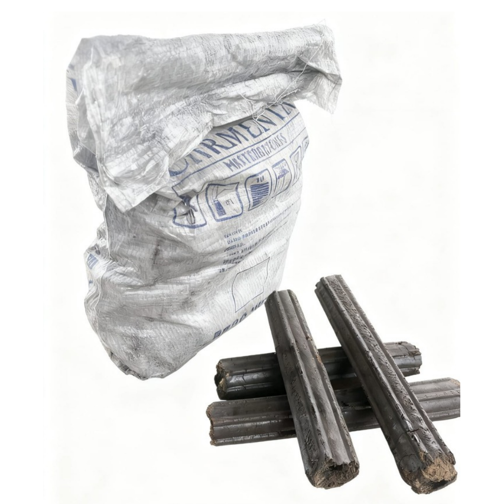 Está elaborada a partir de residuos de carbón vegetal, lo que permite aprovechar al máximo un subproducto que, de otro modo, se desperdiciaría. Esto la convierte en una opción económica y sostenible para generar calor y energía.